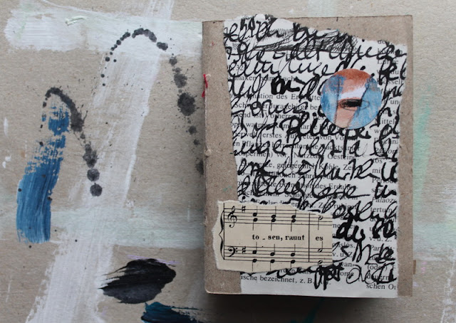 meine diversen gesammelten pappen und papierreste hab ich zu einem doppelbuch in halber postkartengröße (außenformat) verarbeitet. viele kleine collagen sind dabei entstanden, und ich freue mich, dass es für susannes "papierliebe am montag" fertig geworden ist.